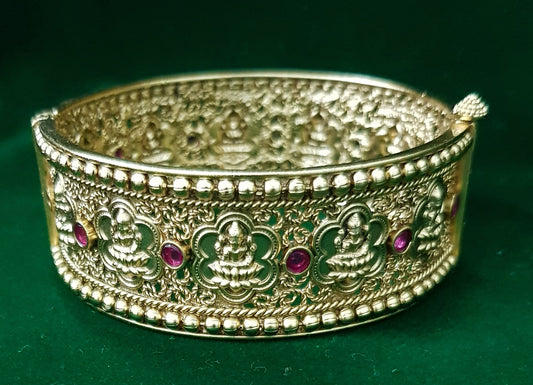 Temple jewelry gold finish lakshmi bangle (kangan-2) with kemp stones
