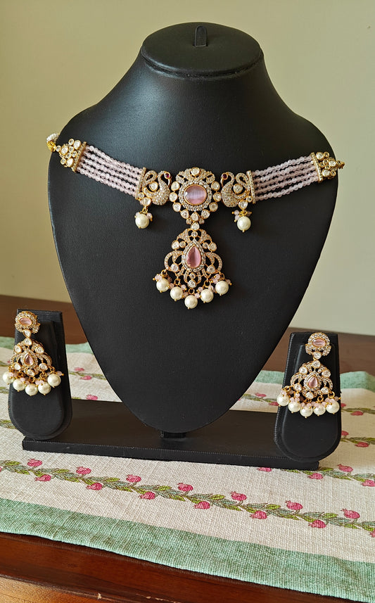 Mrinali set with pink stones and kundan