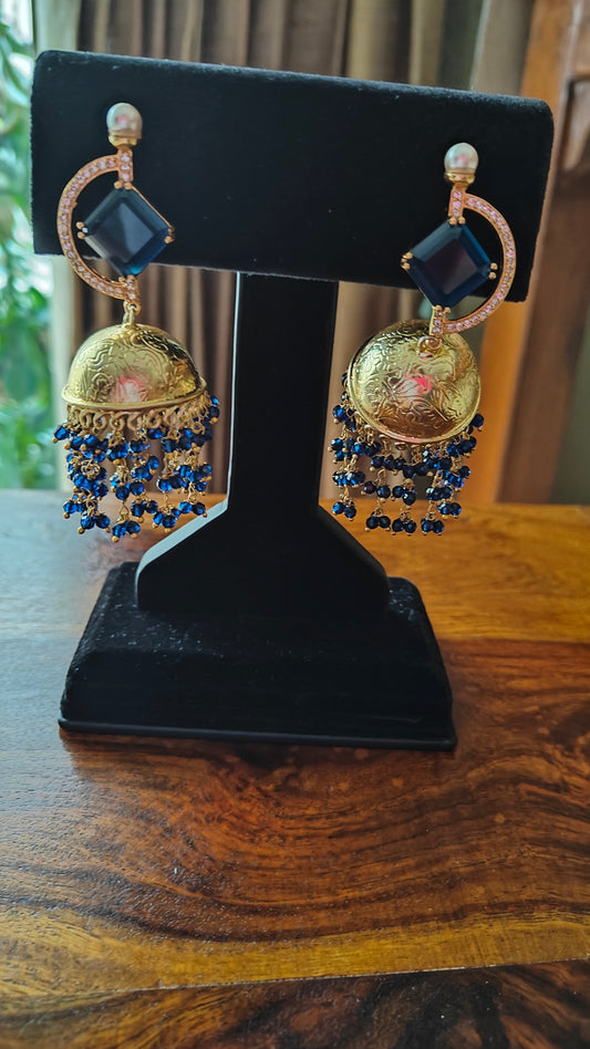 Golden jhumkas(earrings)with stone on D shaped stud