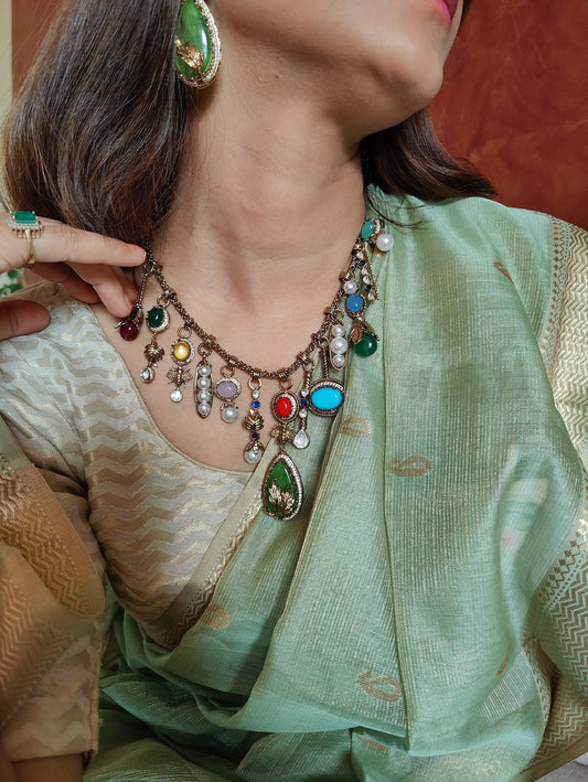 Chitrali elaborate necklace with kemp stones