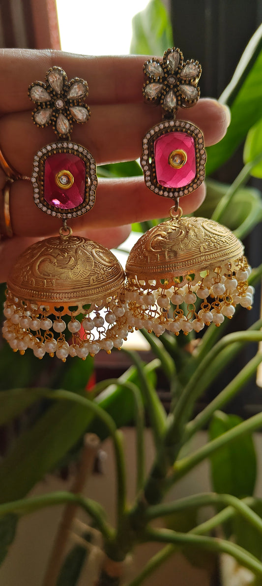 Kurangi kundan and stone jhumkas