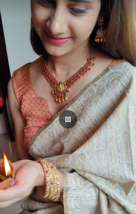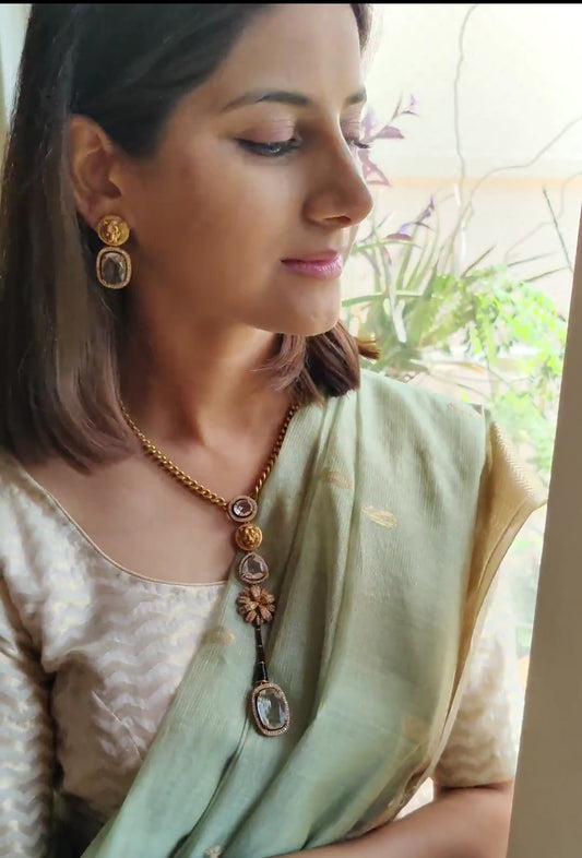 Chaitali pipe hasli(Necklace) set with moissanite and stone.