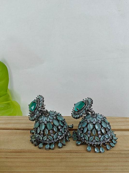 Hasili set in silver finish with Meenakari,stone and kundan work,big meenakari earrings
