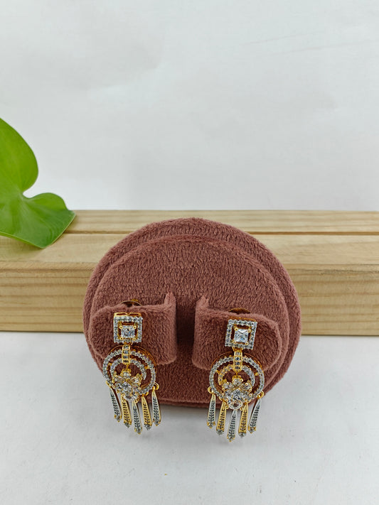 Earrings with a big ring design with pearls,and a dual tone hanging below