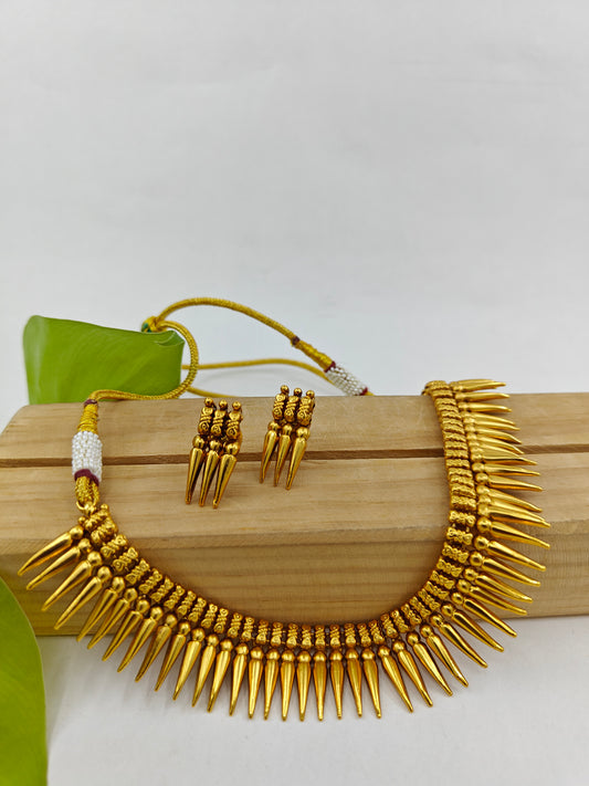 Padmavati Temple set in a gold finish with a Lakshmi pendant, peacock motif all around necklace