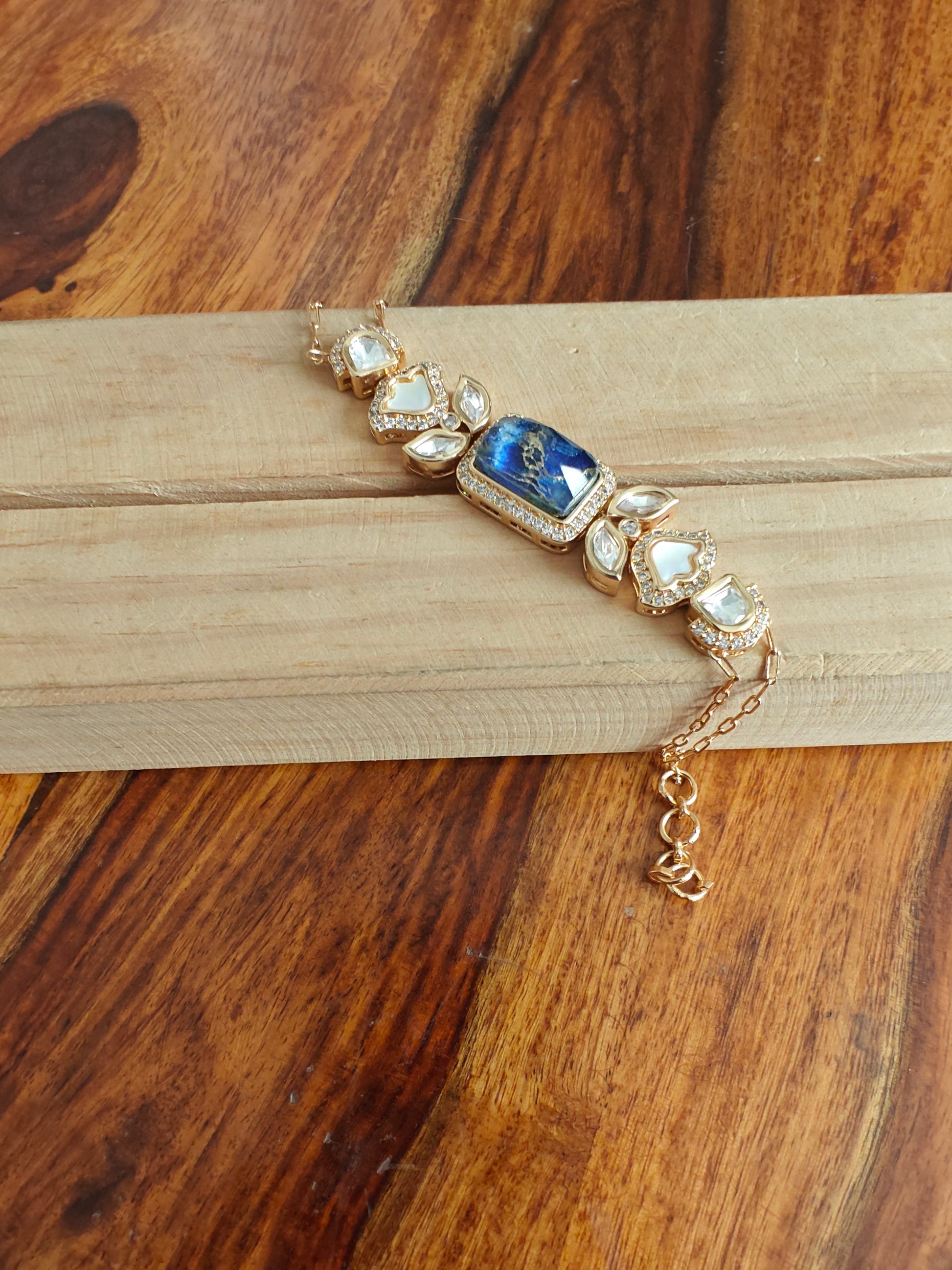 The bracelet is crafted with kundan,mother of pearl and mystic stone.Two colours are available