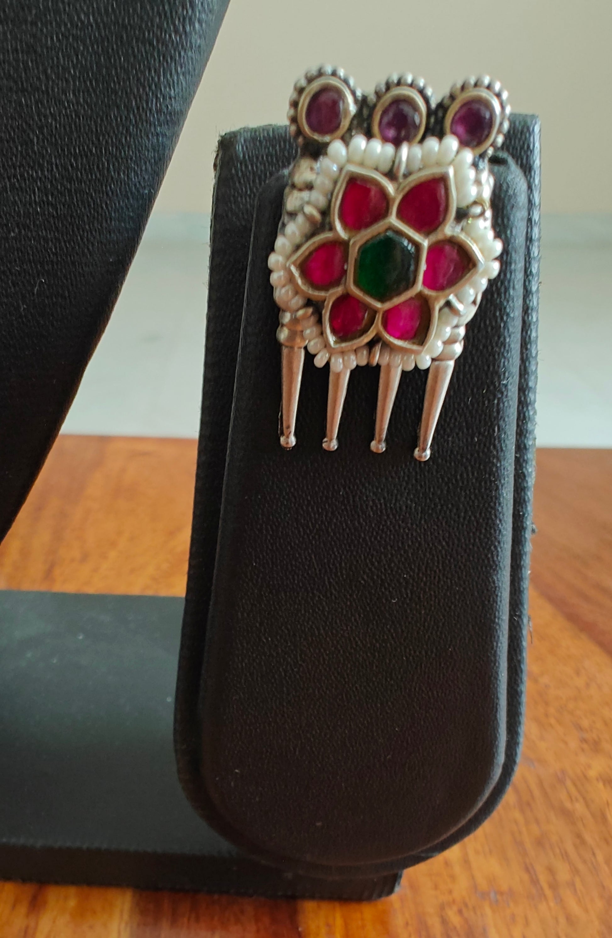 Material: Brass- metal alloy,stone,pearls