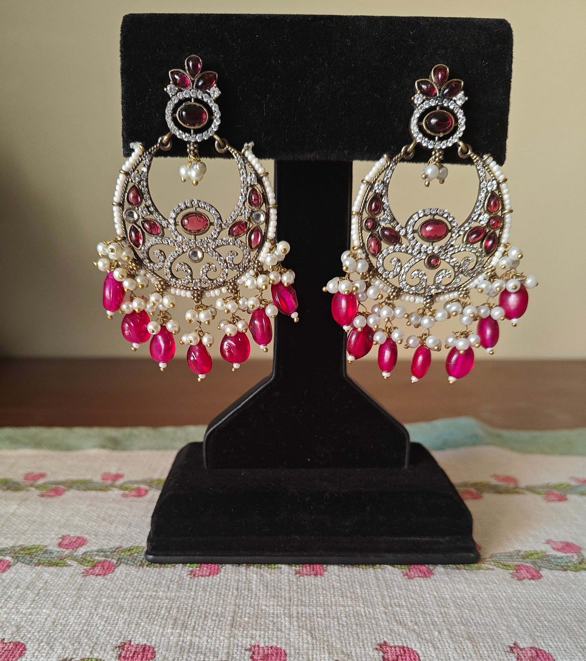 Coloured Stone hangings on these earrings make it a perfect piece to match or contrast with your outfit
