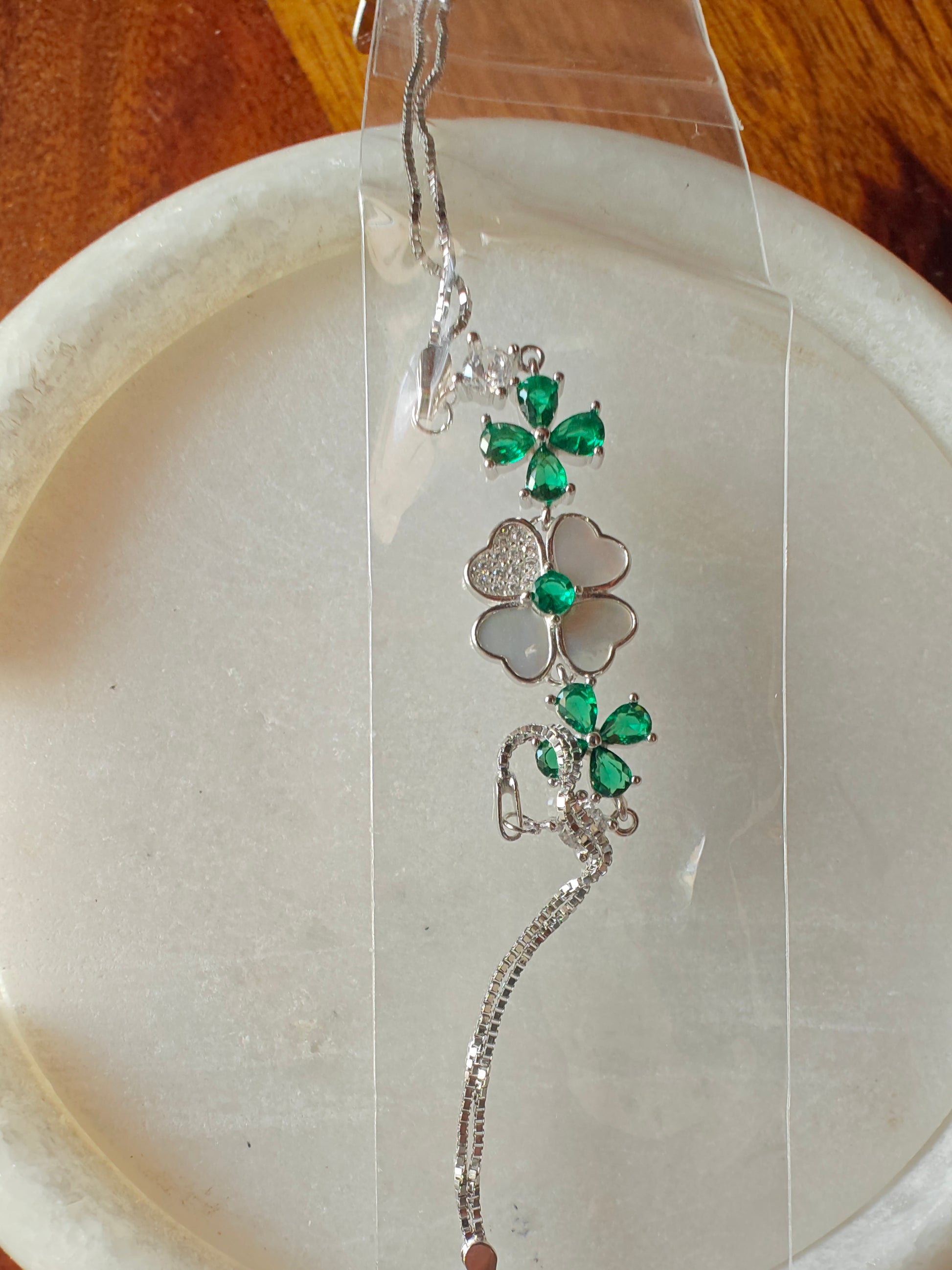 Silver delicate bracelet with stones and mother of pearl