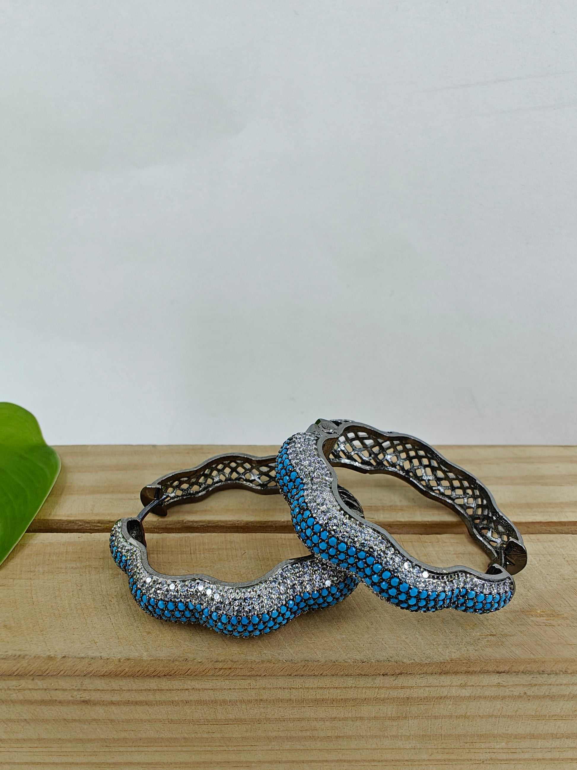 Wavey hoop earrings with nano stones